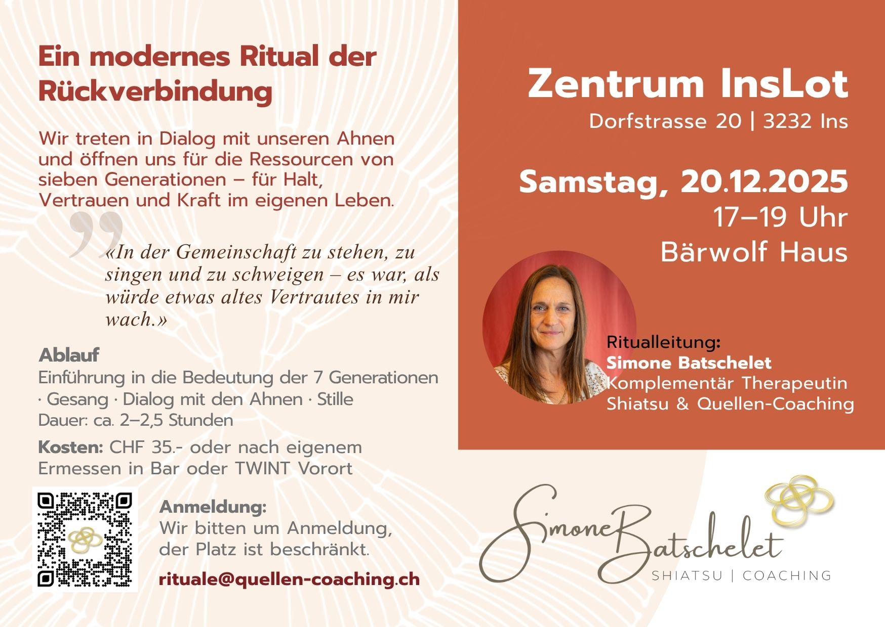 Im Zentrum des Rituals liegt ein Ahnen-Teppich, auf dem die sieben Generationen symbolisch dargestellt sind. So entsteht ein sichtbares, fühlbares Feld der Verbundenheit.